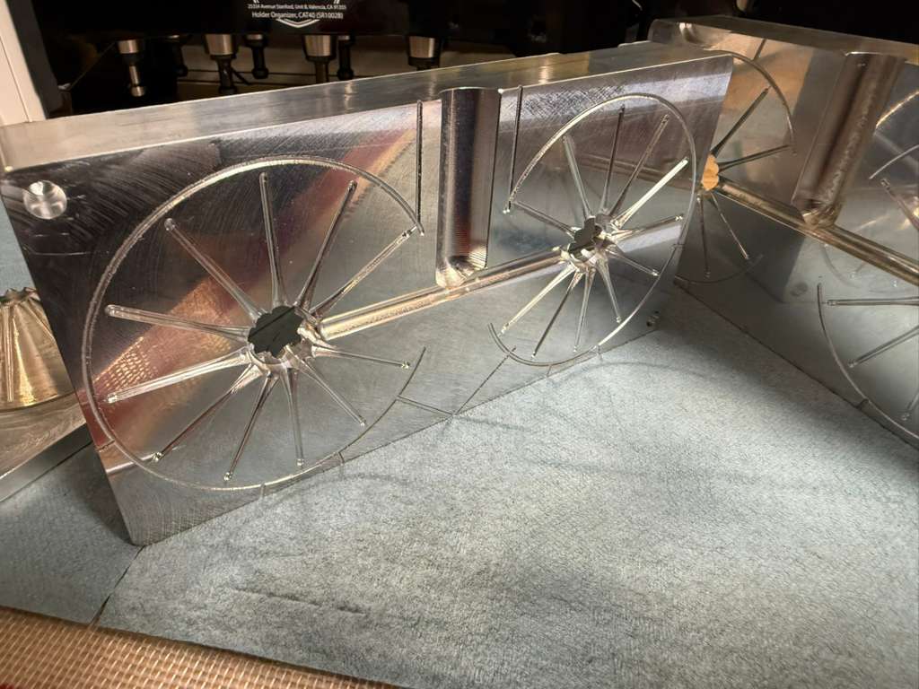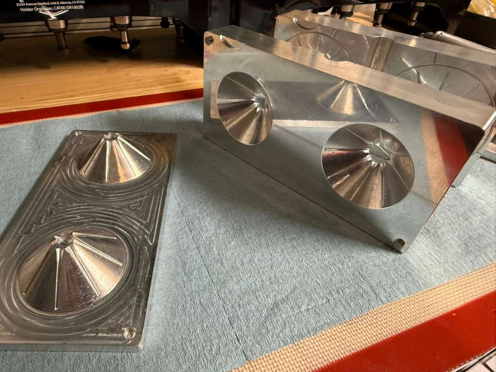 The 3.25 inch, 2-cavity, 4-piece Hairball mold features a .75" inner-diameter ball with 27 spikes with a 3.25 overall outside diameter. Precision machined in the U.S.A. out of 6061 aluminum with 316 stainless inserts.