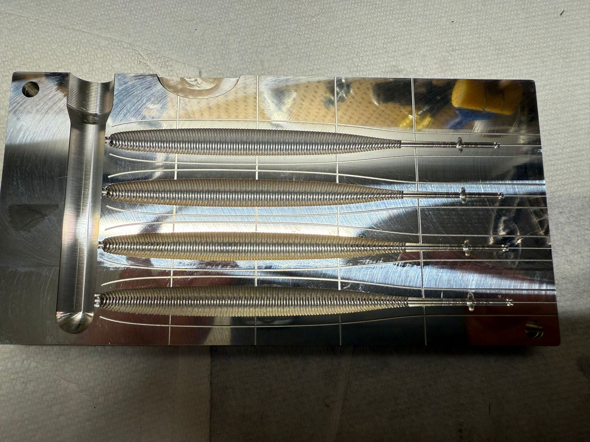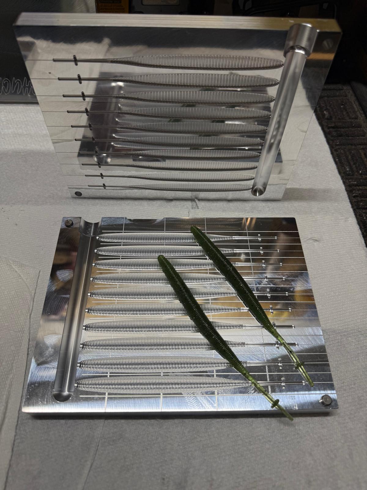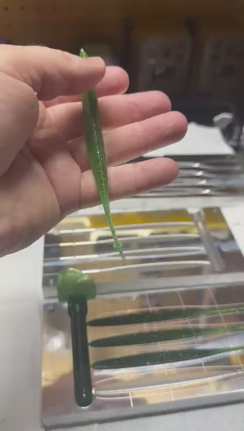The 5.75" pinworm features the body of a trick worm, a pin tail and stickbait texture resulting in fantastic action. Available in 4-cavity and 10-cavity versions.