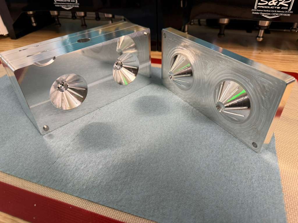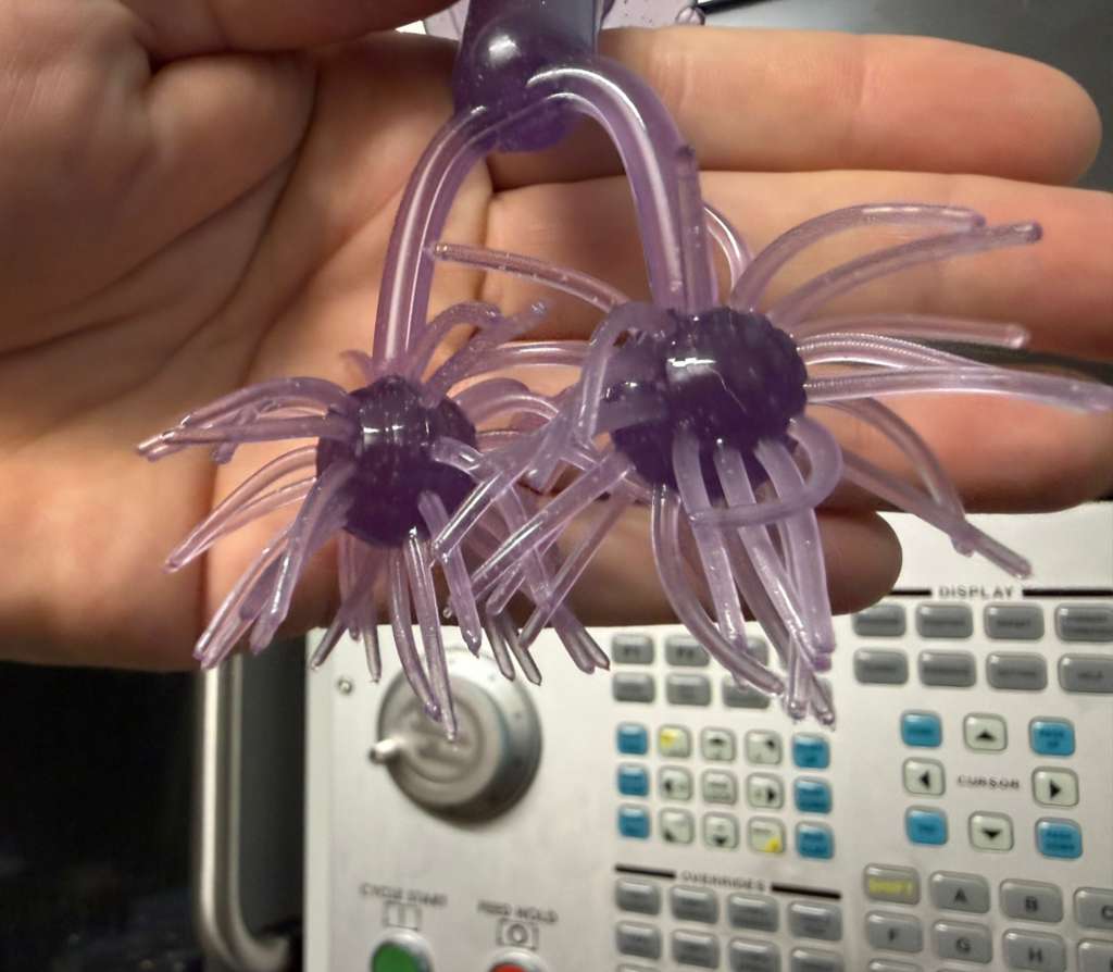 The 2.5 inch, 2-cavity, 4-piece Hairball mold features a .75" inner-diameter ball with 35 spikes with a 2.75" outside diameter. Machined out of 6061 aluminum with 316 stainless inserts.