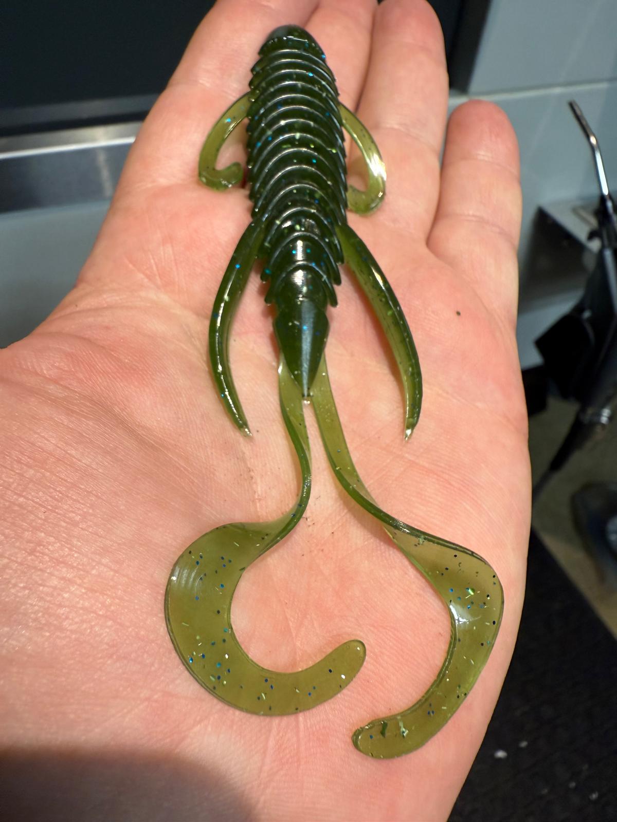 The Hogmaster F is a larger-bodied hog-style bait designed for flipping. Large ribs with tuned appendages for lots of movement on the drop or retrieve. Billet aluminum 4-cavity mold with 316 stainless hardware.